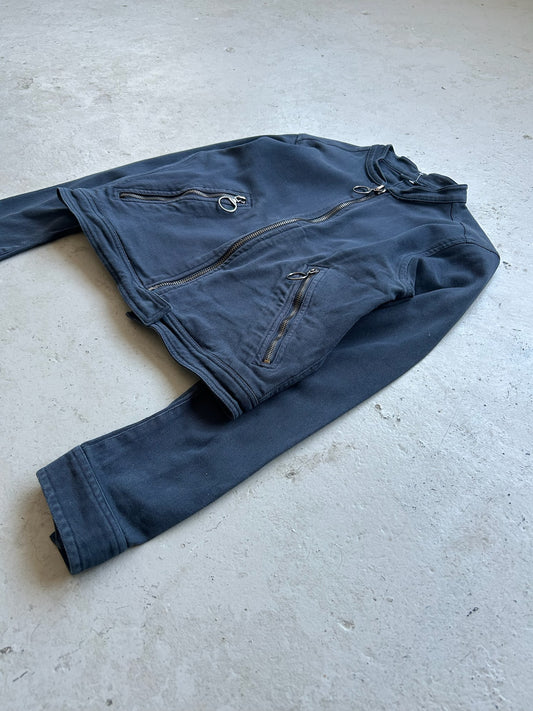 Prada Sport Navy Cotton Nylon Blend Cropped Biker Jacket (46)