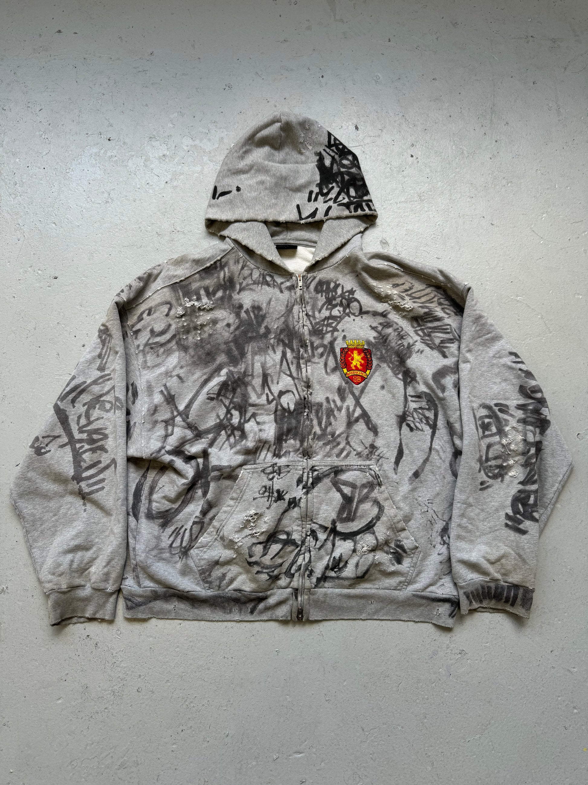 Balenciaga Grey Skater Zip Up Hoodie (L)