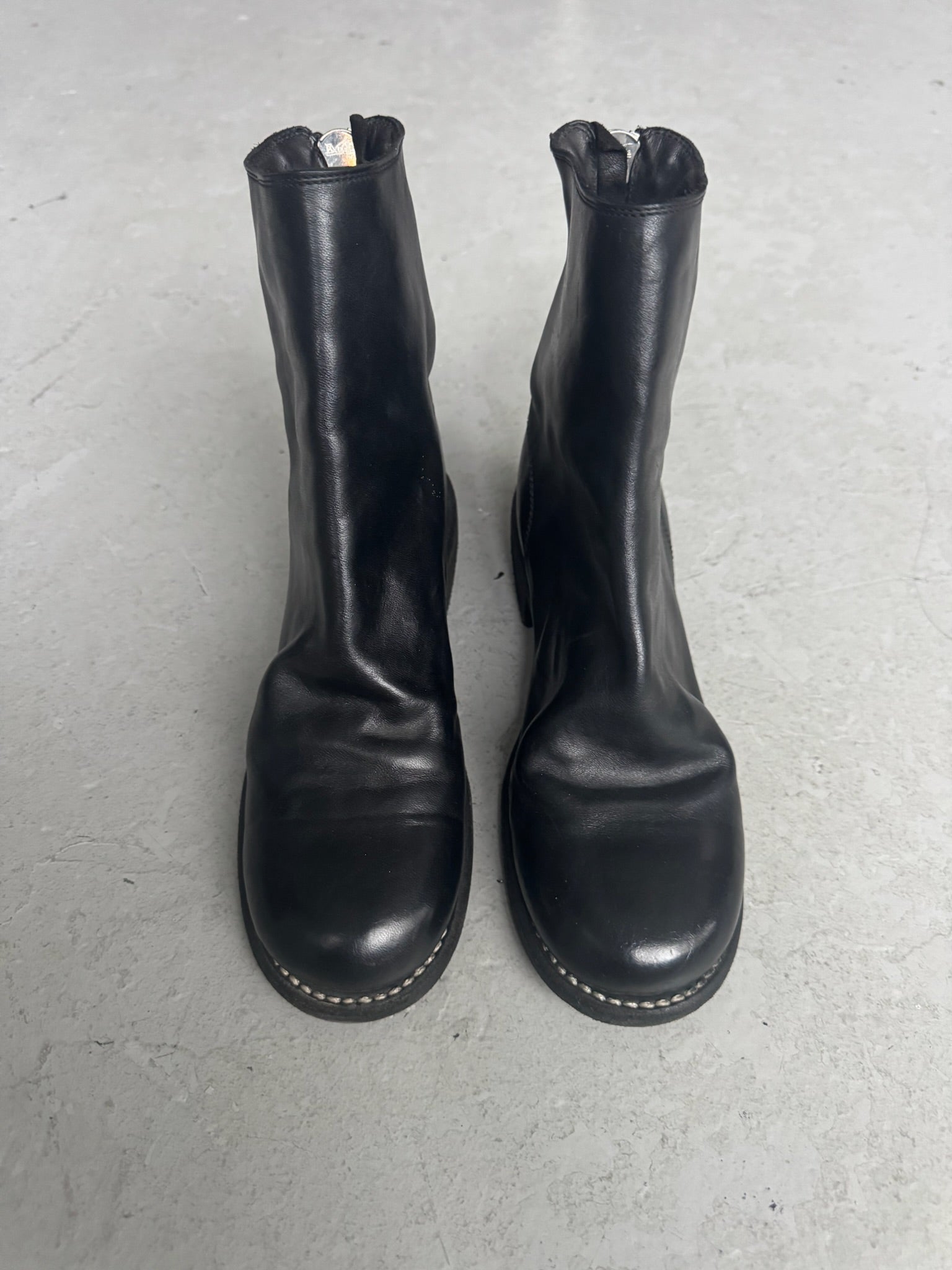 Crafted from supple black horse leather, the Guidi 796 back zip boots exemplify Italian artisanal shoemaking at its finest. The rear zip closure provides effortless on-and-off convenience while maintaining the boot's refined silhouette. Known for their exceptional construction and premium materials, Guidi boots develop a distinctive patina over time, becoming more character-rich with wear. The soft leather molds to your foot for personalized comfort, while the structured design ensures lasting durability. A versatile essential for those who appreciate quality footwear that transcends seasonal trends.