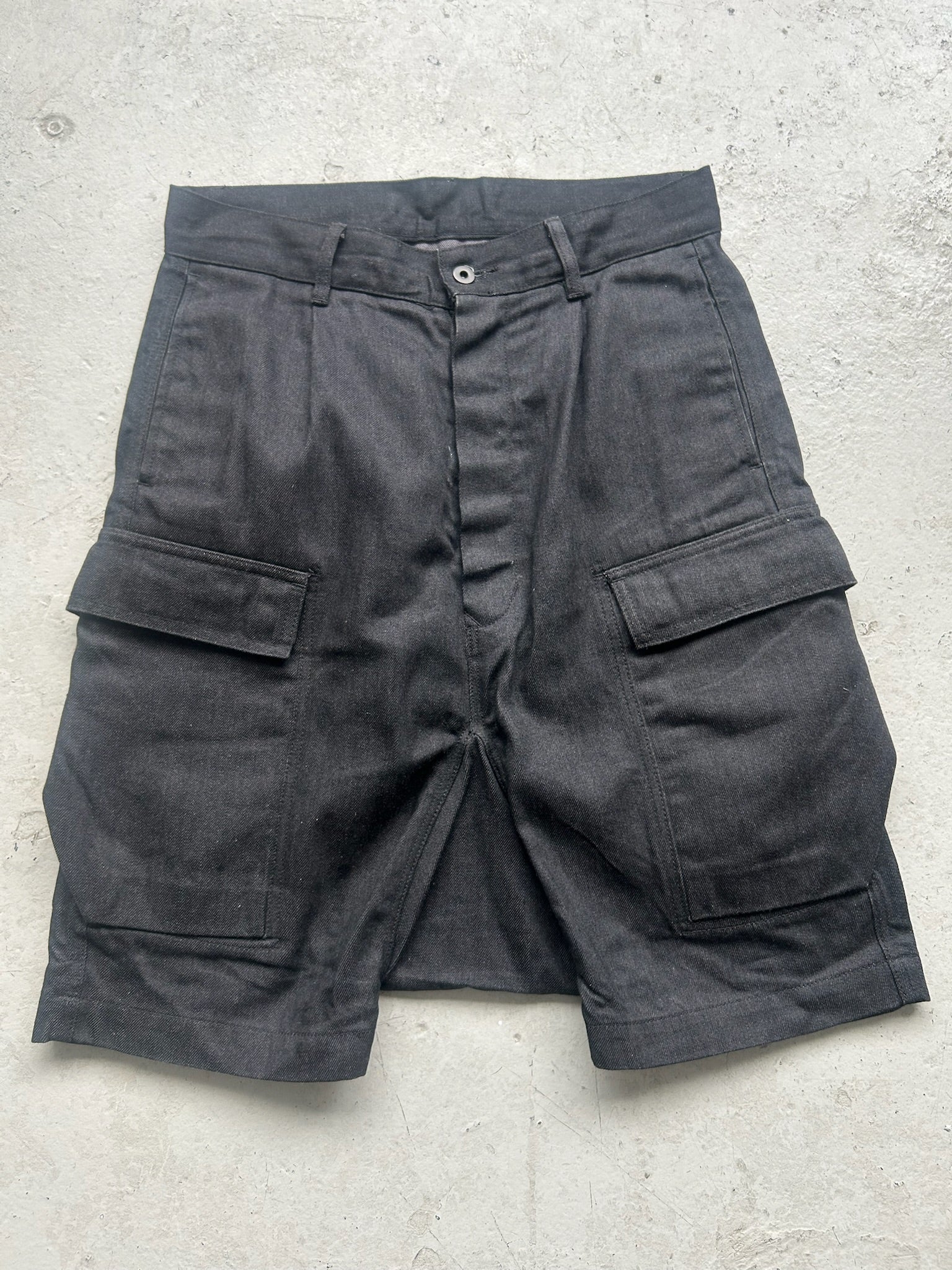 Rick Owens DRKSHDW SS22 Japanese Denim Drop Crotch Shorts (31)