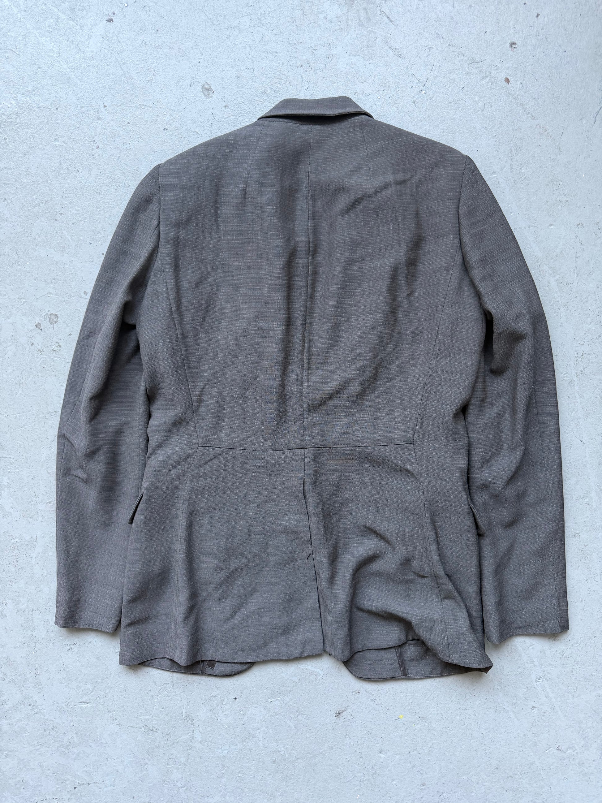 Rick Owens' SS11 ANTHEM blazer exemplifies the designer's signature approach to tailoring—deconstructed proportions paired with refined fabrication. Crafted from a luxurious silk and viscose blend, this piece delivers fluid drape and subtle sheen while maintaining structural integrity. The soft hand-feel distinguishes it from conventional suiting, offering a contemporary alternative to traditional blazers. Season-appropriate and versatile, it transitions seamlessly from refined daywear to elevated evening styling. A defining piece from a pivotal collection.