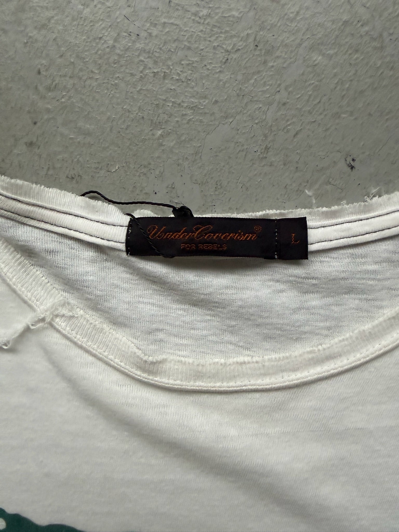 Undercover Scab's Flat Earth T-Shirt merges avant-garde streetwear aesthetics with provocative graphic design. This piece features bold, statement-making artwork that challenges conventional thinking—a hallmark of the brand's irreverent approach to contemporary fashion. Crafted for the discerning wearer who appreciates conceptual depth in their wardrobe, this tee delivers visual impact through meticulous print quality and thoughtful composition. The relaxed fit in size L ensures comfortable everyday wear while maintaining the shirt's striking presence. Perfect for those who value artistic expression and aren't afraid to spark conversation through their clothing choices.